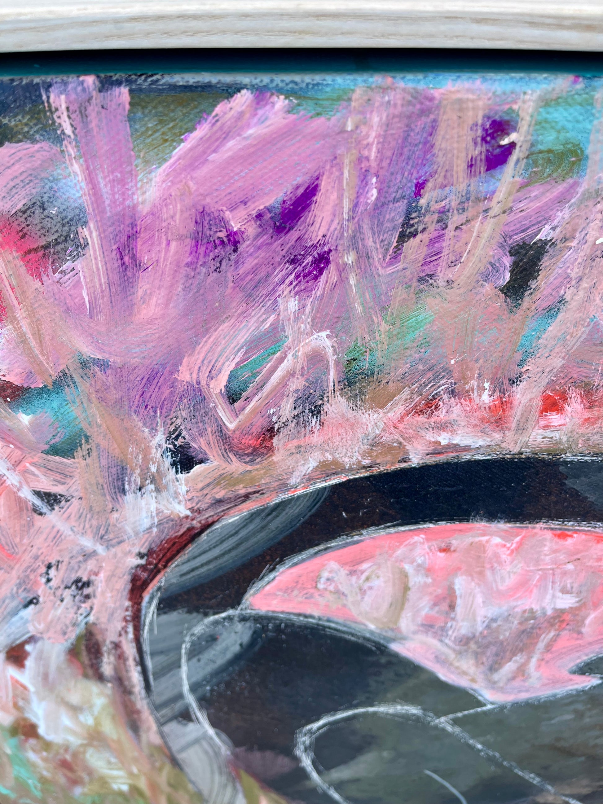Oil and mixed media on a genuine professionally stretched 220z canvas.