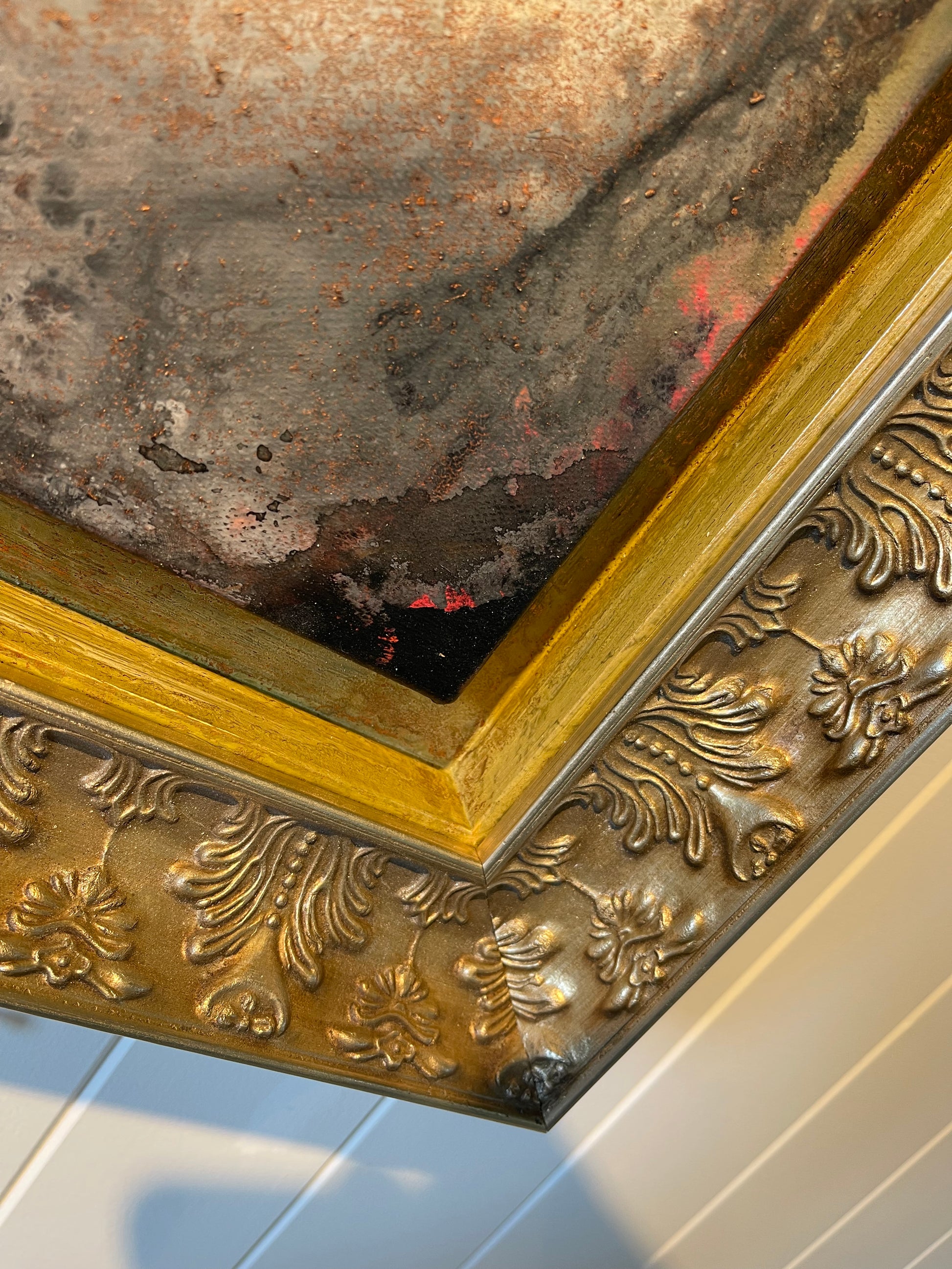Oil and mixed media on a genuine professionally stretched 220z canvas.