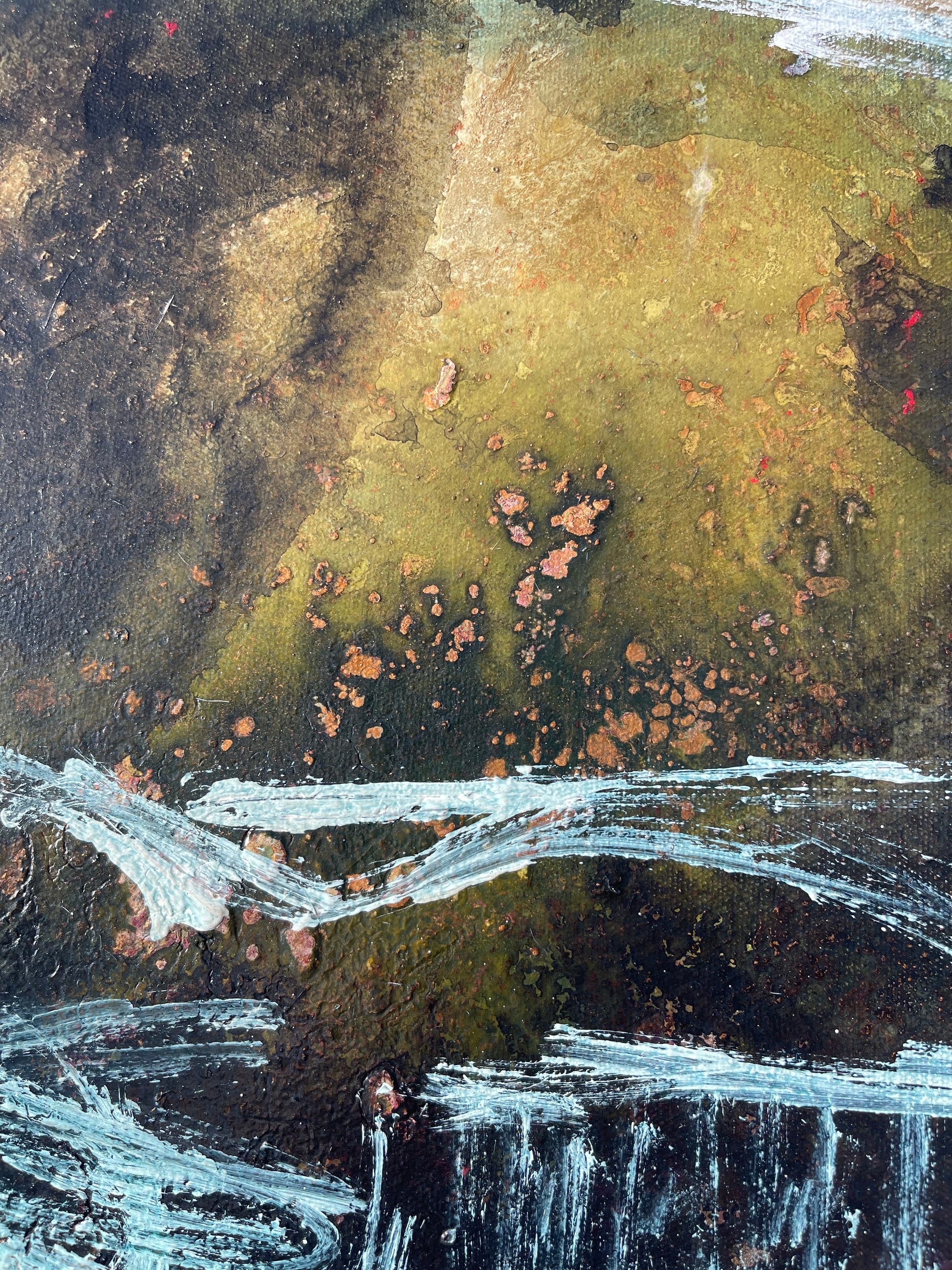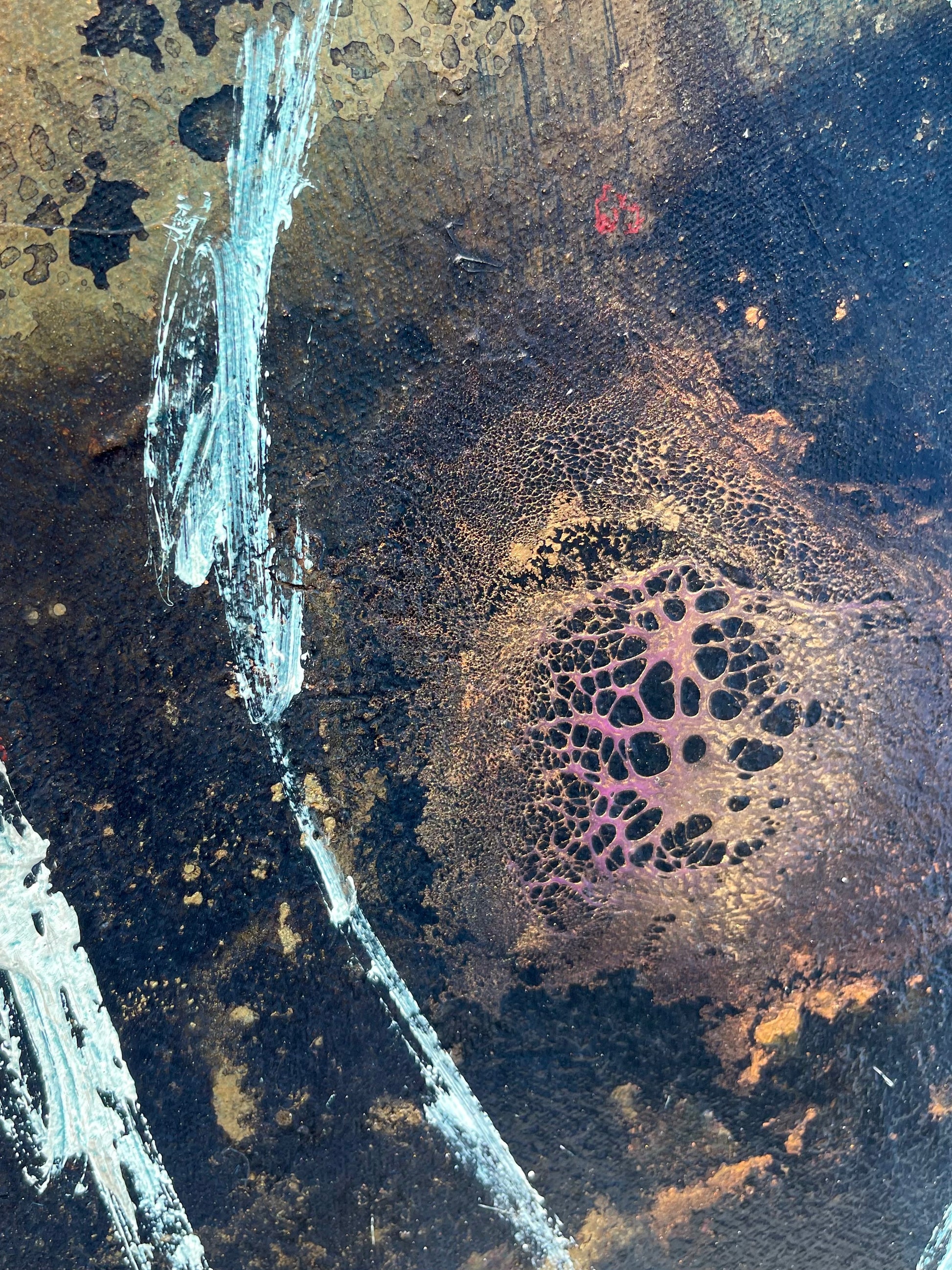 Oil and mixed media on a genuine professionally stretched 220z canvas.